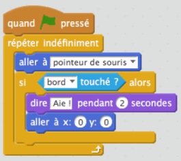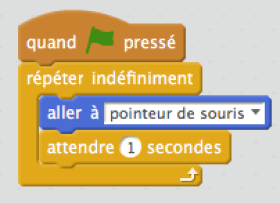 4°) Déplacer la souris sur la scène et observer le résultat, puis cliquer sur