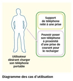 Situation : L’entreprise Pluggy est chargée d’équiper des lieux publics (restaurants, bibliothèques, gares…) d’un support pour recharger facilement tous les modèles de téléphones.