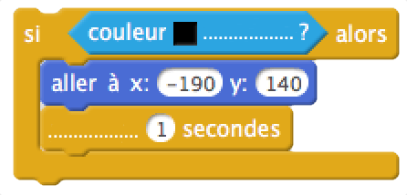 Si la chauve-souris touche un mur du labyrinthe, elle repart à la position x=-190 y=140, puis on attend 1 seconde.