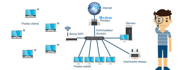 - Des postes clients : les ordinateurs et autres appareils qui permettront aux utilisateurs de se connecter au réseau.