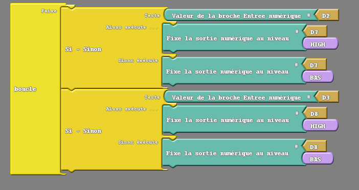 Exemples 1 : Test des microrupteurs et des dels v1 (Dels fixes)
